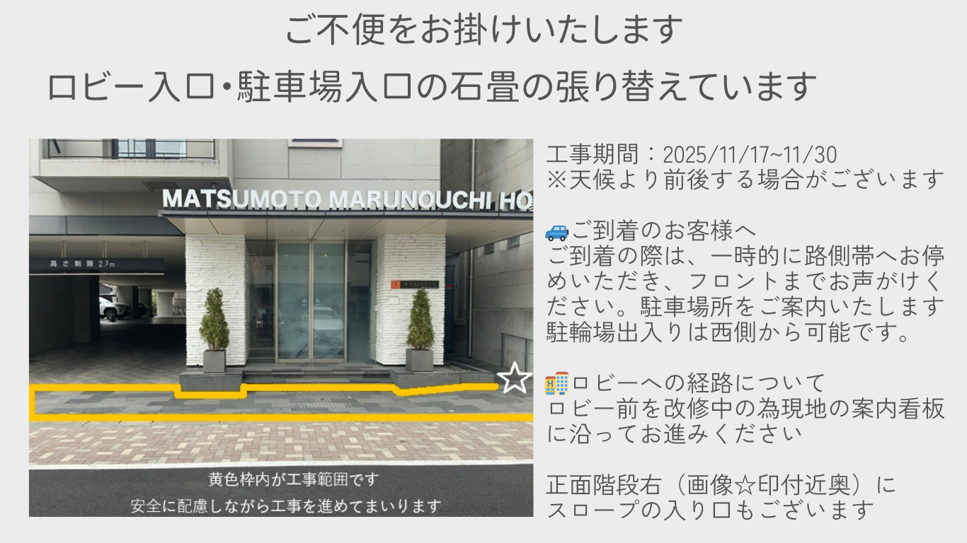 ホテル正面玄関工事のお知らせ | 【公式】松本丸の内ホテル